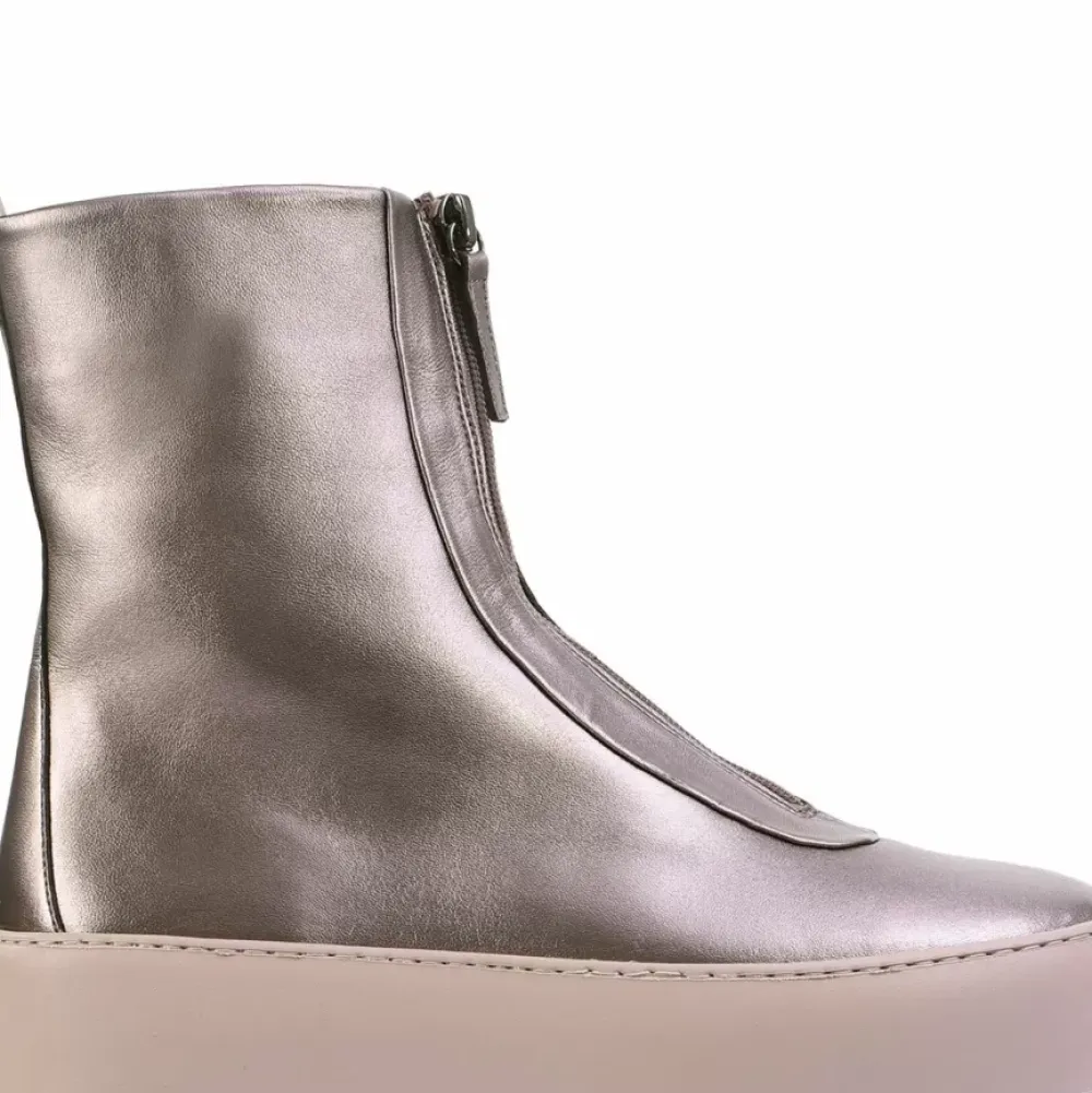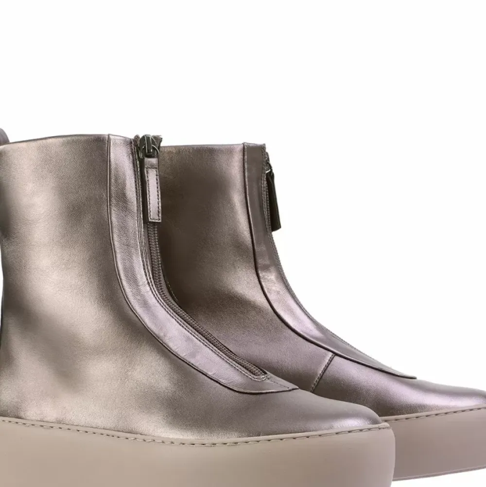 Our Innovative Ankle Boots “Dylan” Impress With Their Casual Look. The Shiny Metallic Leather Makes The Plain Design Eye-Catching. The Front Zips And The Ultralight Cup Soles Create A Dynamic Look And Ensure Optimum Wear Comfort. The Gun And Porcelain Two-Tone Design Results In An Exciting Finish.