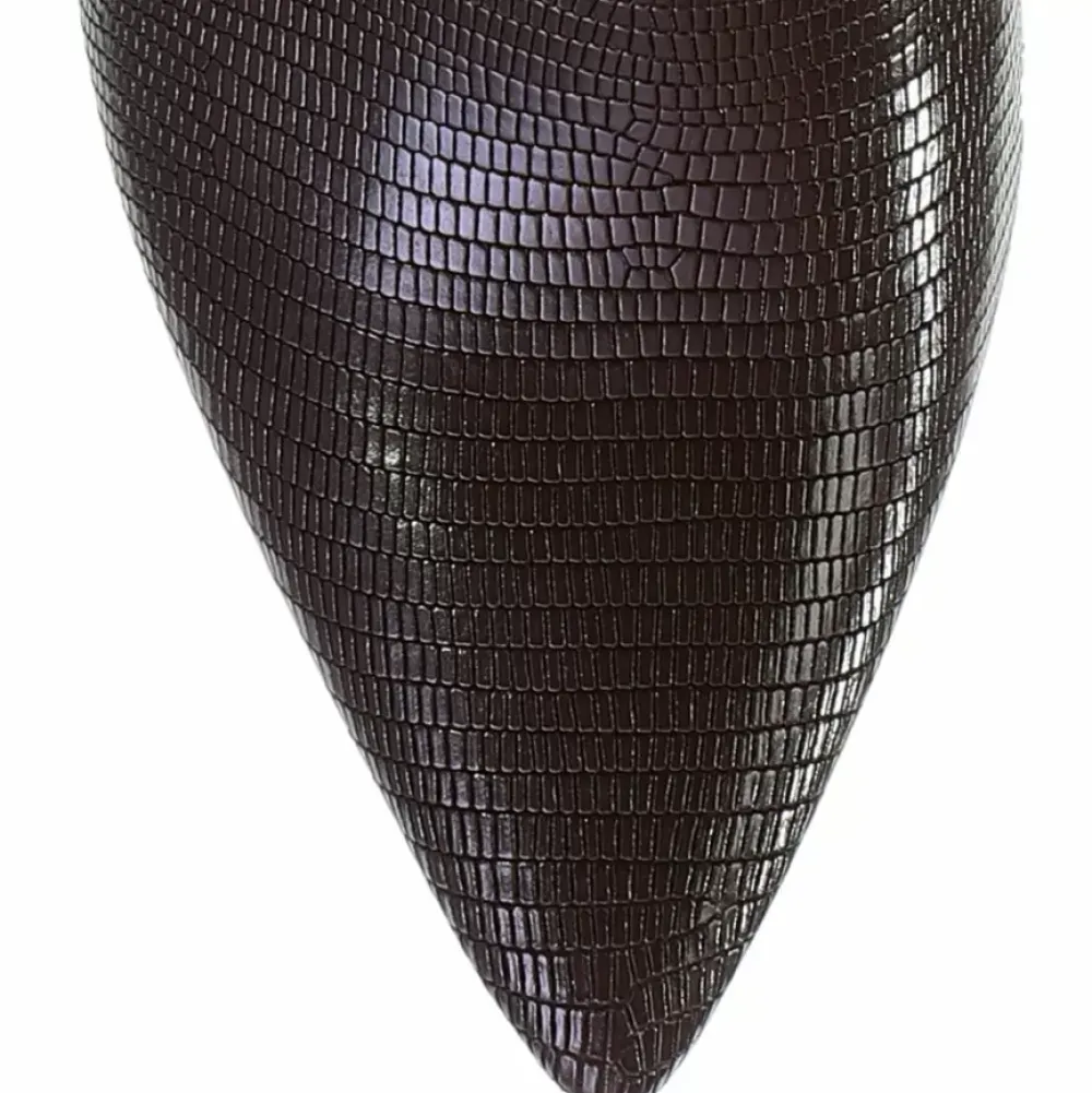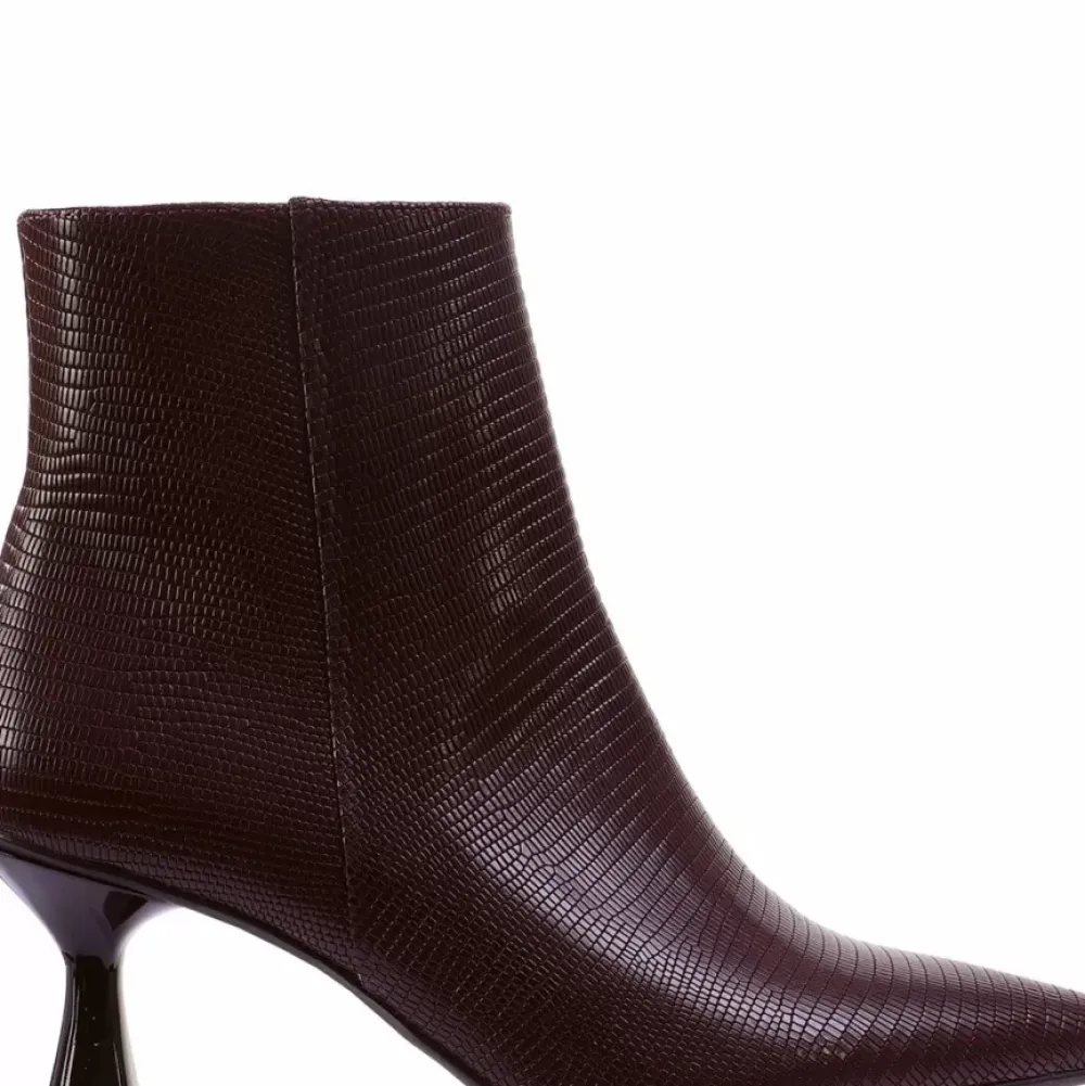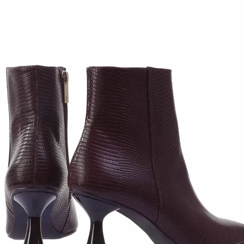 Our Slim Cut Ankle Boots “Charlene” Are Made Of High-Quality Calfskin Leather With An Embossed Lizard Skin Pattern And Embody Extravagance As Well As Urbane Chic. The Leather In The Trendy Shade Cabernet Creates An Exciting Colour Effect That Is Utterly Eye-Catching. The Sculptured Heels Go Perfectly With The Feminine Design And Guarantee Maximum Wear Comfort.