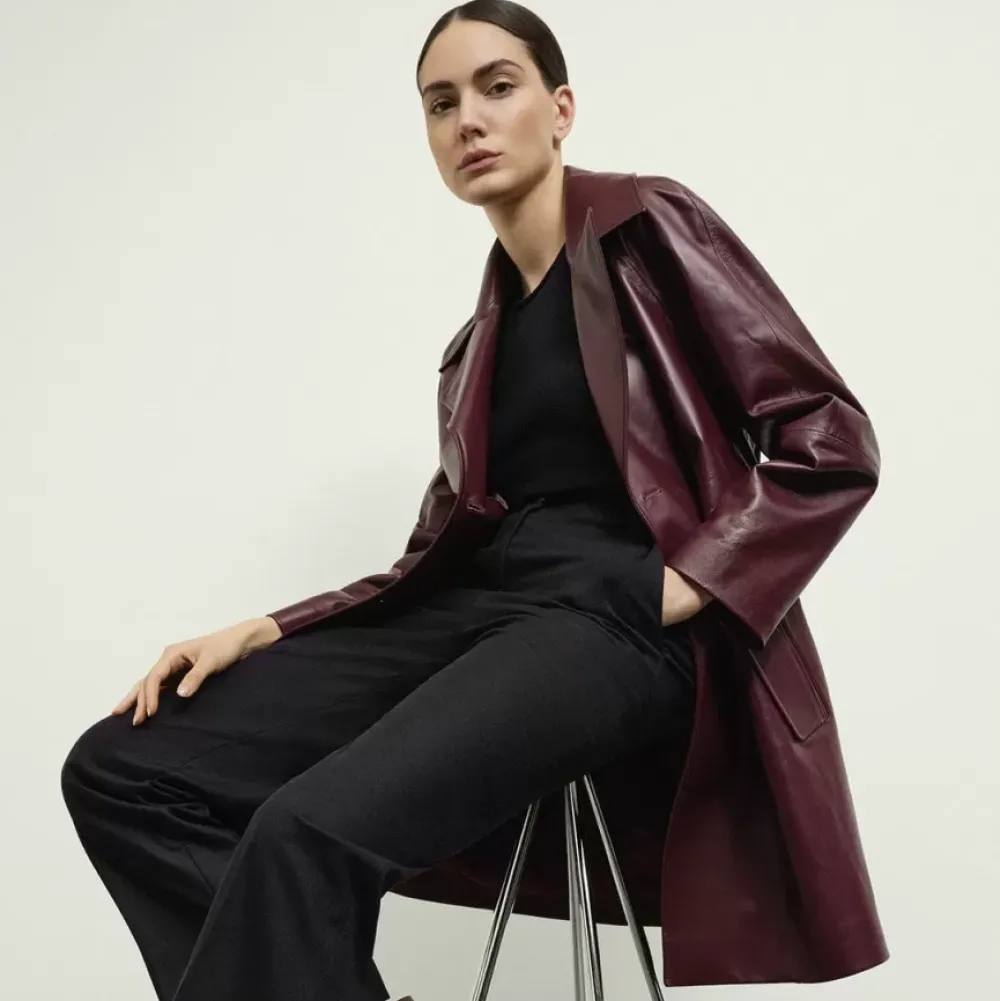 Trench Coats Are Timeless Key Pieces That Never Lose Their Popularity. A Sophisticated Version Of This Favourite Classic And An Investment Piece: Our Short Trench Coat “Britney” Made Form High-Quality Nappa Leather. The Double-Breasted Cut And The Tie Belt Emphasise The Classic Design, Whilst The Trendy Colour Cabernet Adds A Modern Upgrade. This Trench Coat Made In Italy Therefore Adds An Exclusive Feminine Touch To Any Outfit.