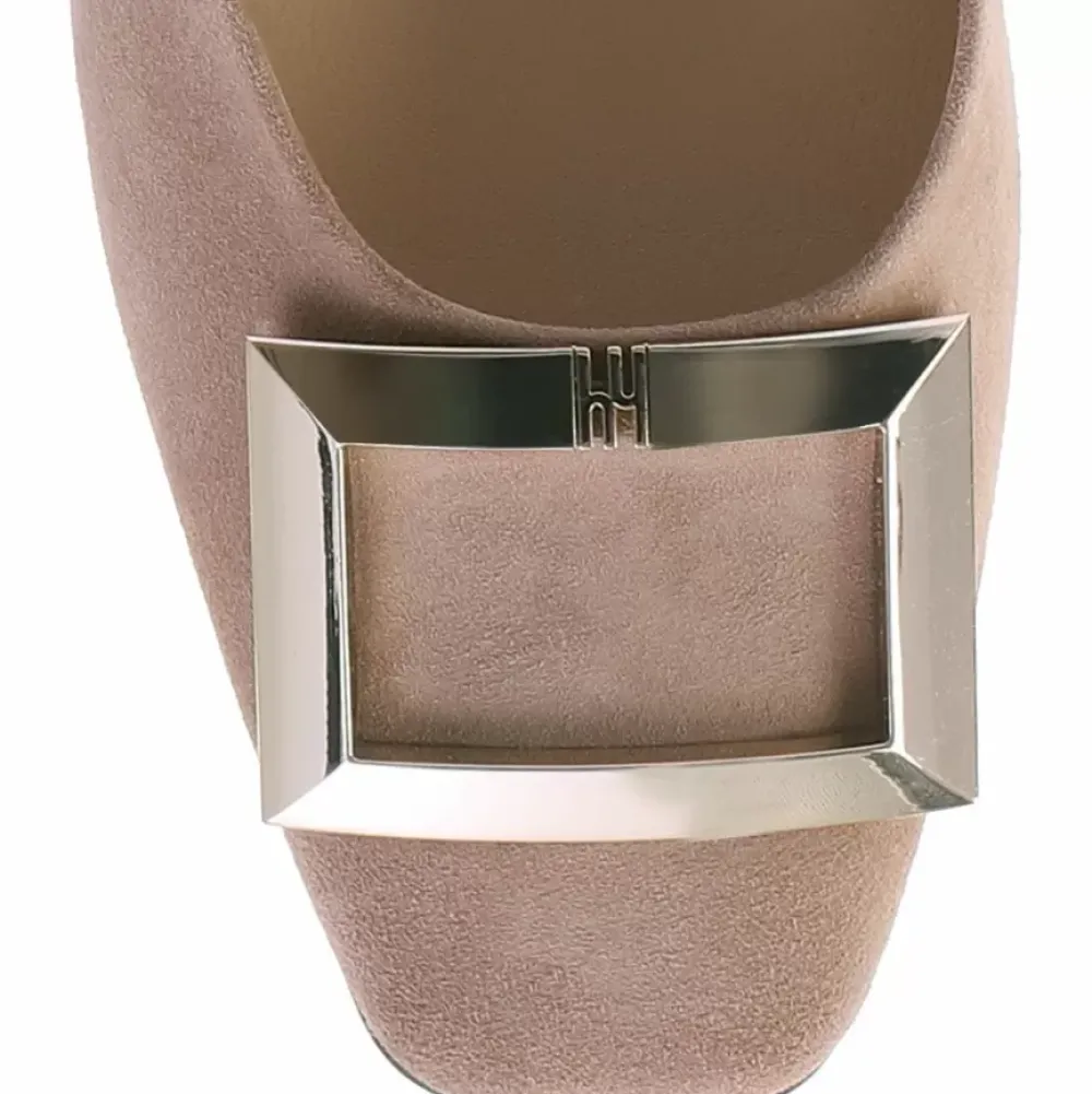 Our Pumps “Thilda” Combine A Classic Design With Modern Details. The Square Golden Buckles And The Angled Heels Add A Contemporary Look To The Elegant Design. Whether During The Day Or In The Evening, These Pumps Are Extremely Versatile And Add A Feminine Finishing Touch To Any Outfit. Made From High-Quality Suede, Manufactured In A Sustainable Way In Europe.
